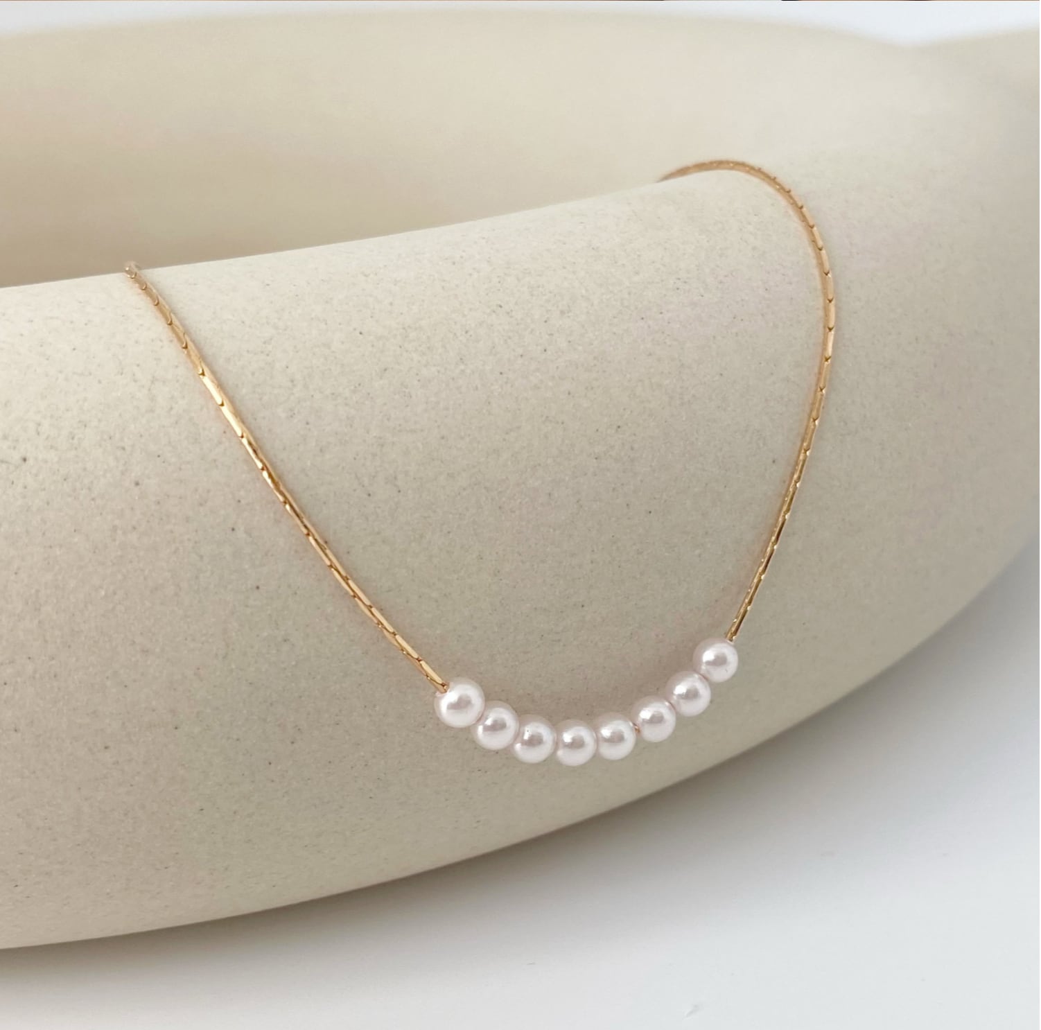 小さめのパールが連なるシンプルなネックレス