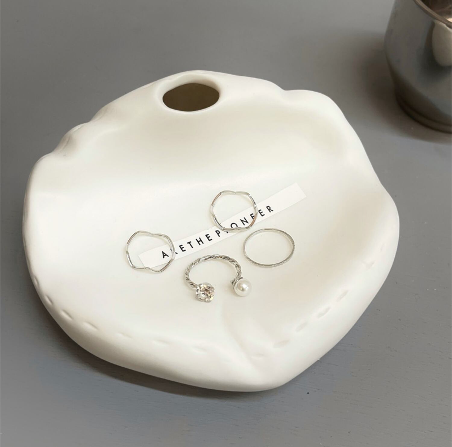ラインのように華奢なリングがセットに。