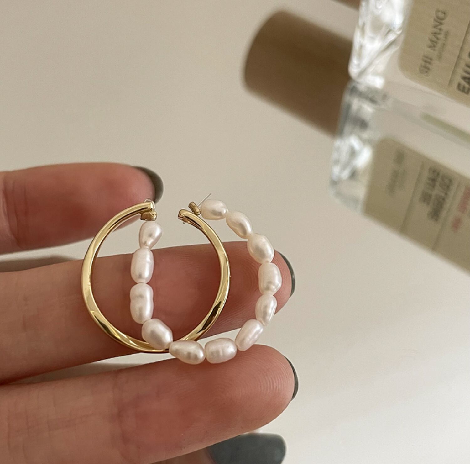不揃いなパールとメタルリングの抜け感もポイント♪