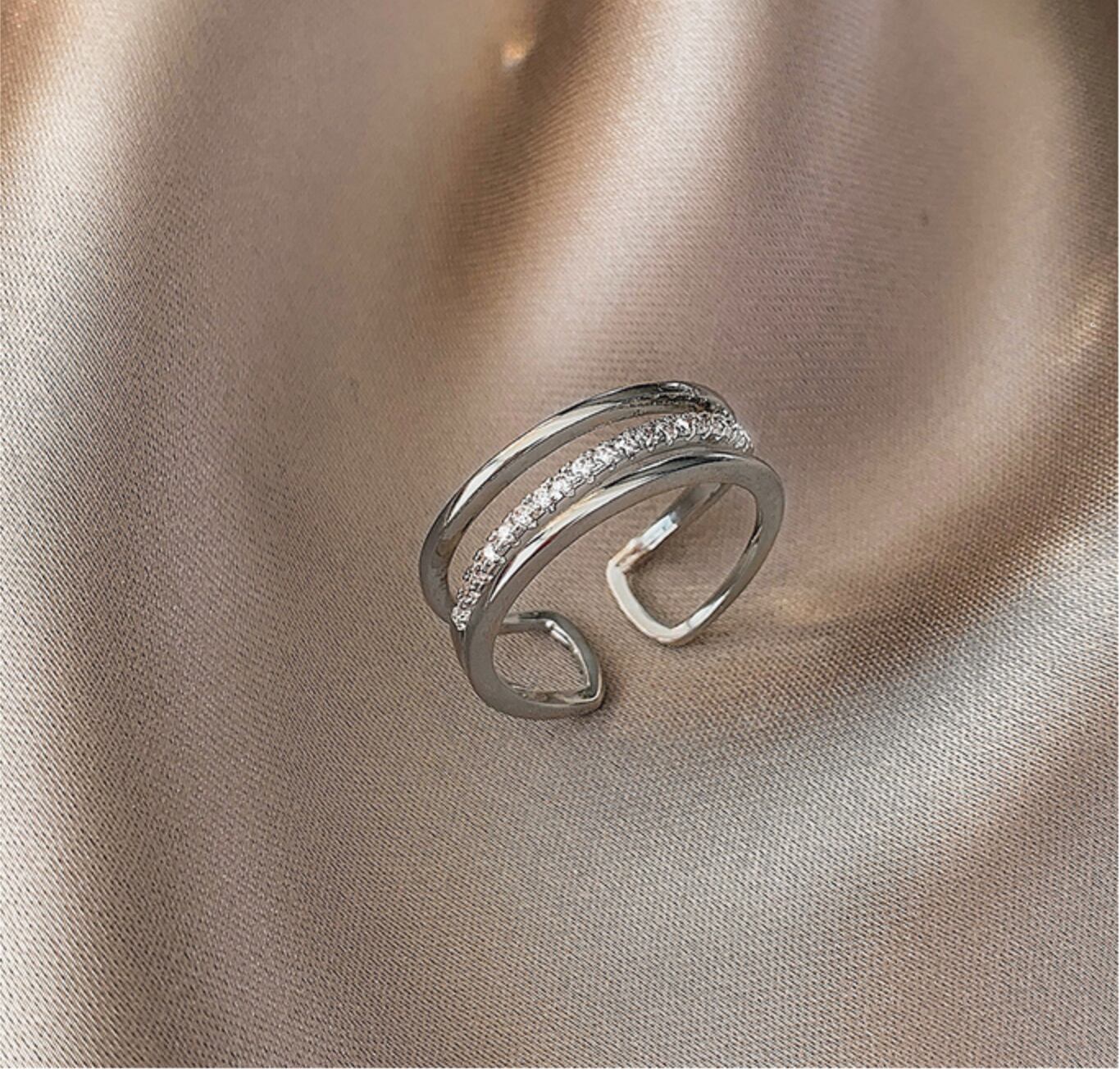 3重になったリングにストーンを並べた繊細なデザイン。